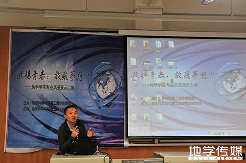 接下来,来自地质工程系的小组代表对地质工程和物探进行了生动的讲解。以陈锣增同学为代表的地质一组,他们用简短的地质灾害视频阐述了地质工程专业的专业范畴以及重要性。同时,从四个方面简单的论述了学科的整体方向,结合自己学习专业知识的经验体会,强调了专业知识的重要性,分析了研究生与本科生的就业状况。接下来,以高斌银为代表的物探一组,主要为大家阐述了地球物探的概况,并重点介绍了电流勘探、探地雷达、地震勘察等三种常用的物探方法。她解释,这三种物探方法的都是以测量地质体的物性差异作为基本工作原理,应用地质勘察的各个领域,提高了勘查工作效率和可实施性。