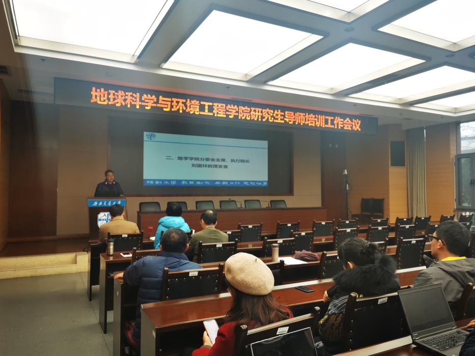 12月23日,地球科学与环境工程学院研究生导师工作培训会在犀浦校区综合楼148会议室顺利召开,学院全体研究生导师参加会议,赵晓彦教授主持会议。