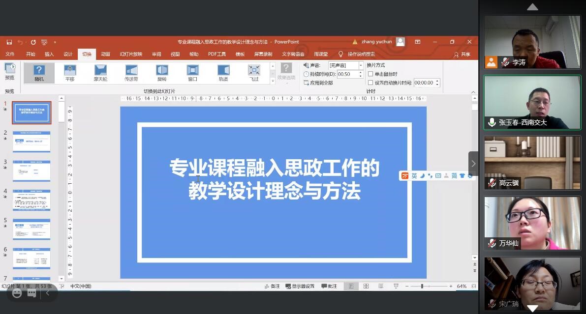 党委委员、副院长张玉春教授给教工消防党支部讲授了《思政课是落实立德树人根本任务的关键课程》和《专业课程融入思政工作的教学设计理念与方法》专题党课。由于受近期成都新冠疫情的影响,本次党课采用线上形式,会议平台为腾讯会议(会议ID:634 962 758),消防工程系全体教师参加了本次会议。