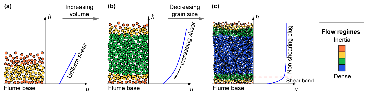 高速远程滑坡形成的颗粒流(碎屑流)的一个重要特征在于,由于源区岩体结构物质的初始组成不同以及失稳后岩体在运动过程中的动力破碎过程,它们的颗粒尺寸范围通常跨越几个数量级。其运动过程包括启动、扩展和堆积三个阶段,通常涉及不同的物理过程。颗粒之间的摩擦和碰撞以及与运动路径的相互作用,是控制高速远程滑坡颗粒流传播与能量耗散的主要因素之一。与高速远程滑坡颗粒流运动过程有关的物理力学机理,主要涉及到以下地球物理学和物理学的关键科学问题:1)高速远程滑坡高流动性的起源可能是什么物理过程?如何量化和模拟多分散性和破碎过程?2)如何从理论上量化和描述颗粒尺寸分布在空间和时间的演变及其与流动的耦合?(3)如何从其沉积特征中探究流动的传播机制和特征(质量、起始过程、颗粒-颗粒相互作用的程度等)?这些问题的研究,将有助于最终构建确定其最大运动速度、最远运动距离、最大堆积范围以及对结构的冲击力大小等运动学动力学参数的本构模型,实现高速远程滑坡灾害的预测预报。因此,高速远程滑坡颗粒流的运动机制,已成为国际滑坡动力学研究领域亟待破解的重大科学问题。