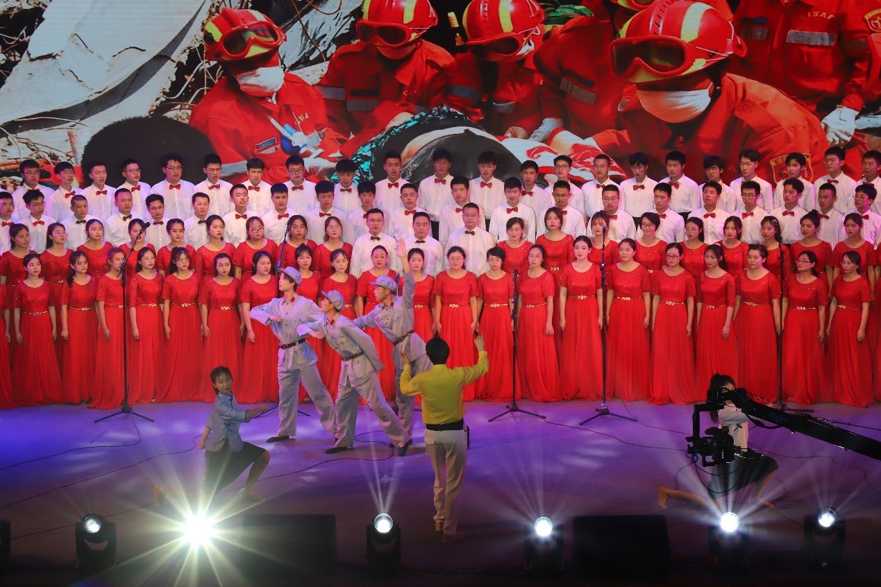 舞台上,女生的歌声婉转悠扬,抒发对党无尽的热爱;男生的歌声高亢雄壮,似要将党的光辉历史再现眼前。配合深情的朗诵、优美的舞蹈更是让人眼前一亮。他们个个情感饱满,整齐有序,共同演绎了《妈妈教我一支歌》《没有共产党就没有新中国》。