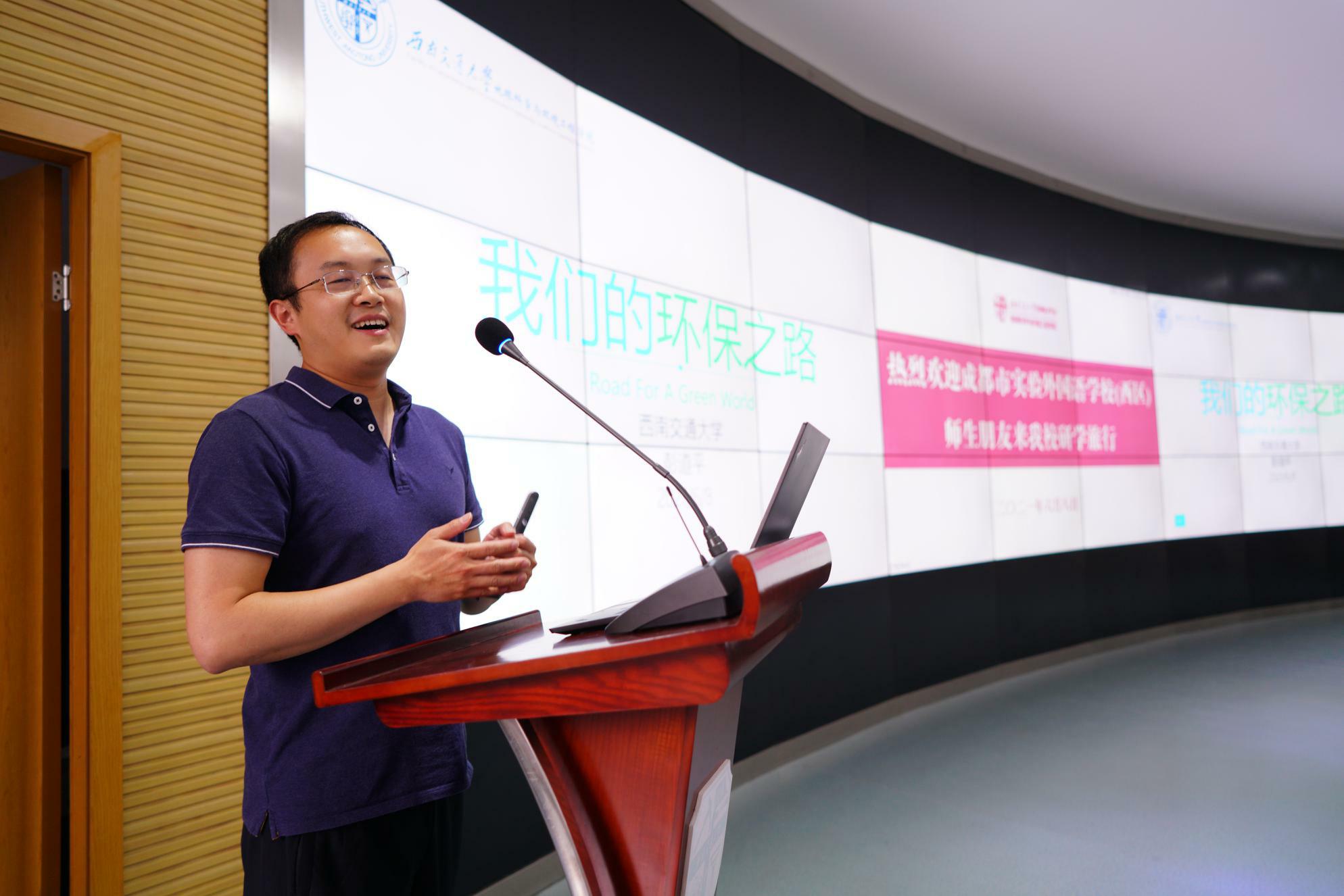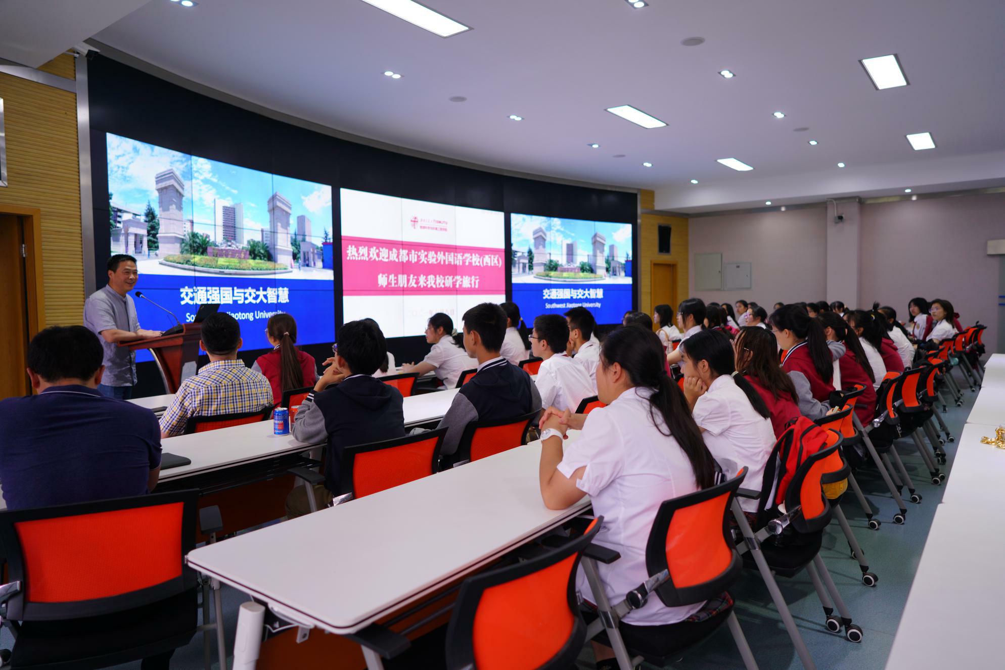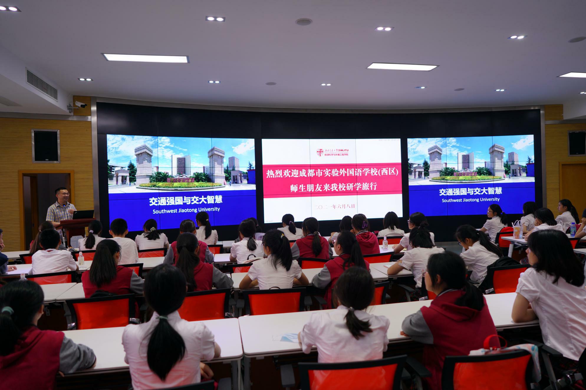学院领导热情接待了成实外的师生并为同学们准备了内容丰富的讲座。关秦川介绍了交大办学目标、校内人文景观,列举了我校部分杰出校友在轨道、高铁方面做出的巨大贡献和成绩,表达了对同学们践行“竢实扬华”的殷切期待。傅尤刚表示,交通驱动要素流动、拉动关联产业协同、促进经济发展,交通强国是世界强国的显著特征,而交大在交通方面更是遥遥领先;通过宣介交大近年招生情况,鼓励同学们努力学习,考上心仪的大学。彭道平从环保之路出发,介绍了成都市近年来在环境保护方面的项目,为同学们展示了各种生活垃圾的图片并引导其分辨,现场气氛活跃;通过播放微塑料相关视频,让同学们更加深入了解塑料垃圾的危害,意识到环保之路依旧漫长。
