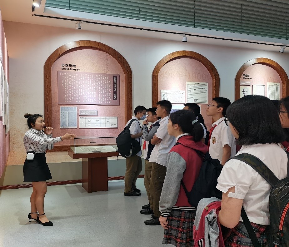 中午,同学和老师们在学校第四食堂就餐完毕后,前往校史馆参观,在讲解员的引导下,一同见证了百年唐院的辉煌,从中领悟了一代代交大人敢于拼搏、顽强斗争的精神,更加深刻理解了“竢实扬华,自强不息”的真正内核。