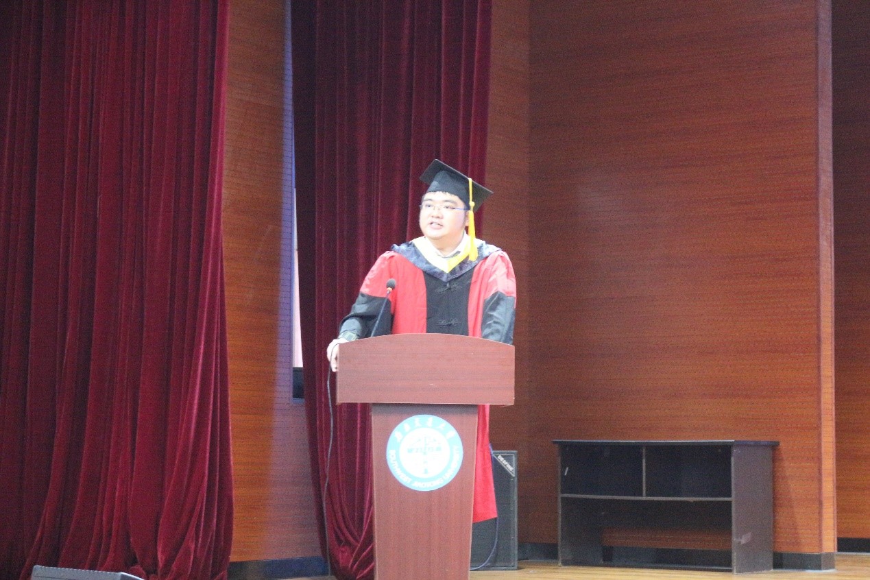 安全工程专业蔡伟健、地质工程专业罗鑫、遥感科学与技术专业石泽文、环境工程专业郭梦岩作为学生代表发言,表达了对母校、对学院的感谢与眷恋,对同窗好友的祝愿。