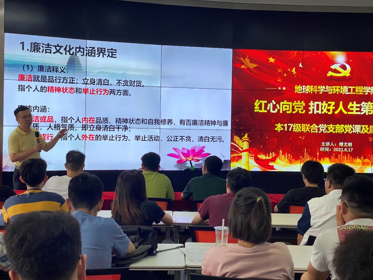 本2017级联合党支部于X4243多功能报告厅,组织开展毕业离校教育活动之廉洁文化教育专题活动,学院党委副书记、纪委书记傅尤刚主讲,本2017级联合党支部参加教育活动,本2017级辅导员老师翟琦主持。