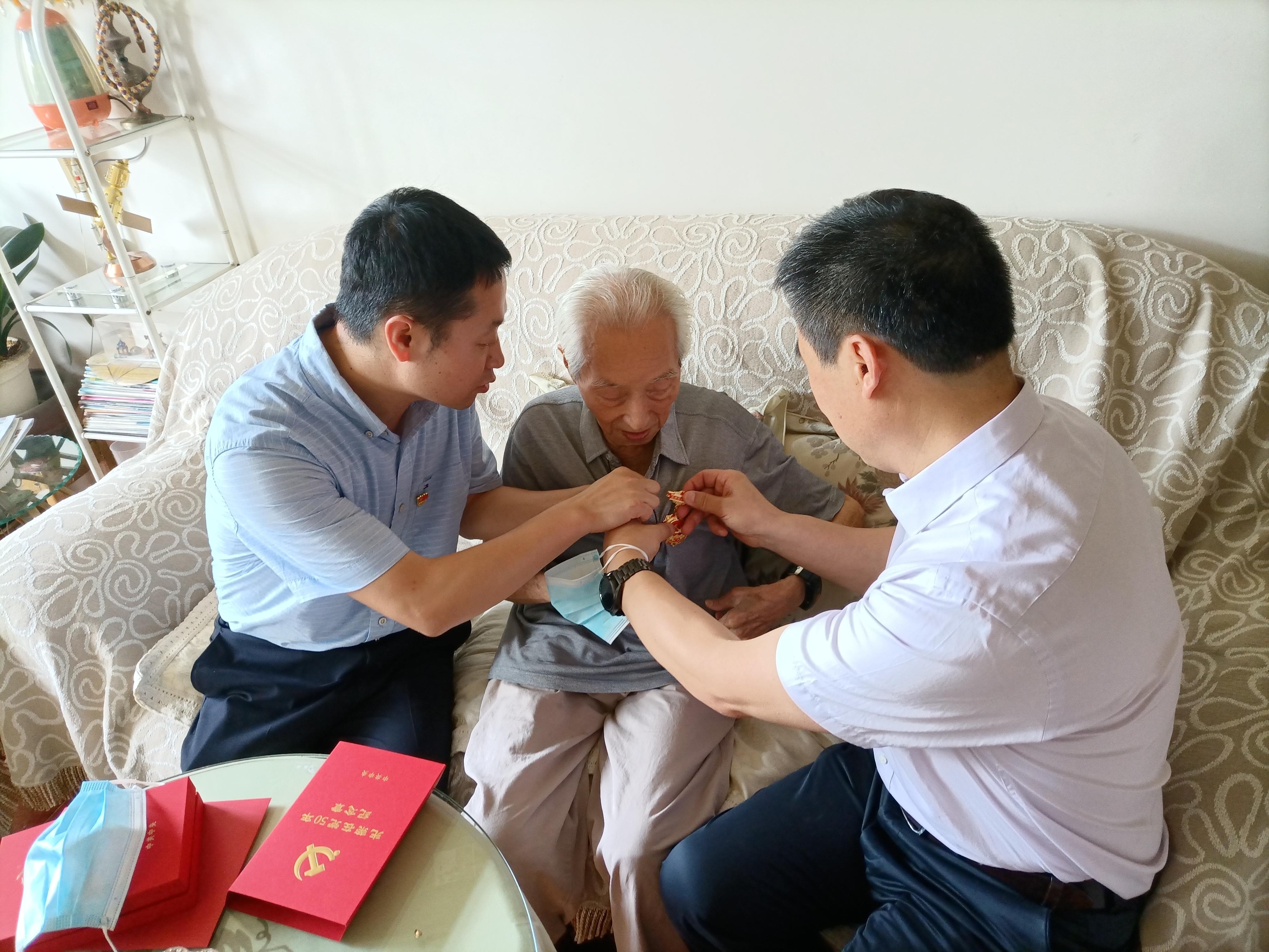 慰问中,关秦川代表学院党委详细询问老党员同志的生活与身体状况,并向他们致以节日的祝贺和衷心的问候。关秦川代表学院诚挚地感谢他们为学院发展所作出的积极贡献,分享通报了学院近期主要工作开展情况,并为老党员同志佩戴“光荣在党50年”纪念章并送上慰问金。关秦川表示,颁发“光荣在党50年”纪念章是中国共产党成立100周年庆祝活动的重要组成部分,充分体现了以习近平同志为核心的党中央对老党员、老同志的关怀和温暖,希望他们保重身体,安享幸福晚年。党员老同志们对党组织的关心表示感谢,在建党一百周年之际,对学院的发展寄予厚望,频频嘱咐,希望学院搞好发展,重视对青年人才的培养和关爱,并祝愿学院越来越好。