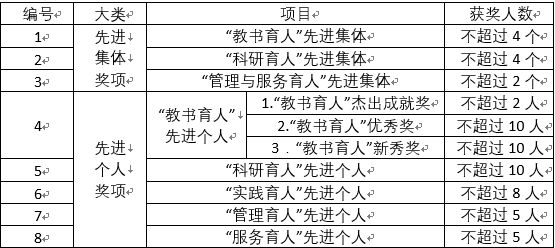 “立德树人”先进集体和先进个人评奖工作”,具体通知请见附件。评选项目以及获奖人数如下: