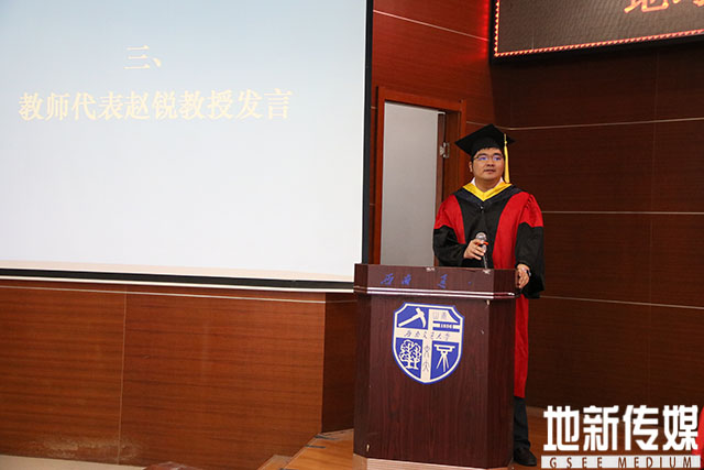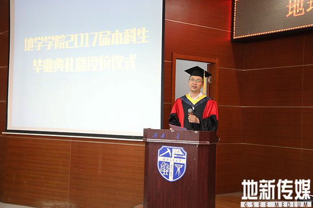 Dean Liu Guoxiang first expressed warm congratulations and heartfelt blessing to the graduates, he said, four years of all the students have achieved, four years of time let you give the courtyard left the most beautiful "geoscience memory", these memory will always be cherished. Liu Guoxiang gave a three-point message to the graduates: one is to forget beginner, to move forward, so that the ideal serves as the direction of life; the second is to persevere, strive to forge ahead, let the strive become the eternal value of life; the third is to be grateful to the people who helped, know how to cherish, so that good deeds and thanksgiving is the essence of life creed. Finally, Liu Guoxiang wish the 2017 graduates to have a heart as a teenager, remember "do not forget your primary goals", understand "beginning is easy, keep is difficult", I hope to see graduates of 2017 to achieve their dream, but do not forget to go back and visit the university.