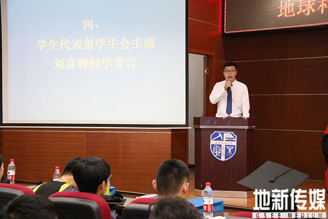 Dean Liu Guoxiang, Professor Wang Qirong, Vice Dean Hu Xiewen, Vice Dean Qi Hua, Chair Wu Xiyong, Chair Yuan Linguo, Chair Zhao Rui, Chair Zhang Yuchun, and faculty members of Fire Engineering, Research and Mapping, Geological Engineering and Environmental Engineering as well as class instructors and counselors attended the ceremony. The ceremony was presided by Fu Yugang, Deputy secretary of Geoscience College party committee.