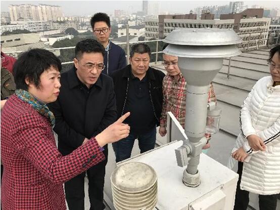 On 15th February 2017, Yu Huiwen,Director and Party Secretary of Sichuan Environmental Protection Bureau, paid an investigation on “Sichuan Province regional environmental air quality comprehensive monitoring station”,situated in Jiu Li campus.Director Yu was accompanied by the Director of station Du Ming,Deputy Director Luo Bin and Associate Dean Ou Yangfeng.