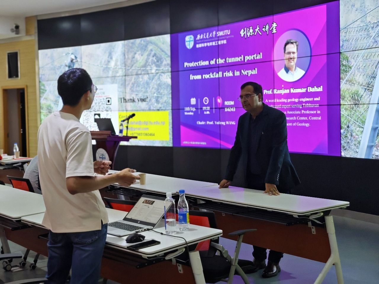 为推动国际化示范学院建设,开阔师生国际视野,提高师生科研能力,营造良好学术氛围,我院程谦恭教授团队特邀尼泊尔特里布文大学Ranjan Kumar Dahal教授于2023年9月18日上午在犀浦校区X4243会议室开展学术报告。Ranjan教授是尼泊尔地质工程和地质灾害领域著名专家,过去20年来一直从事地震、滑坡和泥石流等地质灾害的研究工作。
